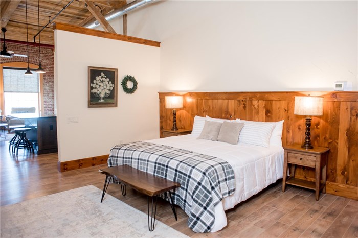 The King Suite has an over-sized king bed, a full living area, kitchenette, large bathroom with walk-in shower, two flat-screen TVs and free wi-fi. The Suite has optional bottled water, juice, soda and coffee. This Suite accommodates two guests. Suites are located on the third floor of the Rusty Rail Brewing Co. and an elevator is available for access to all Suites. The Brew Pub is located on the first floor and is open seven days a week.If you would like to stay in our Luxury Suites or visit the Rusty Rail for dinner or drinks, contact the Suite Concierge JoLynn Weikel at: